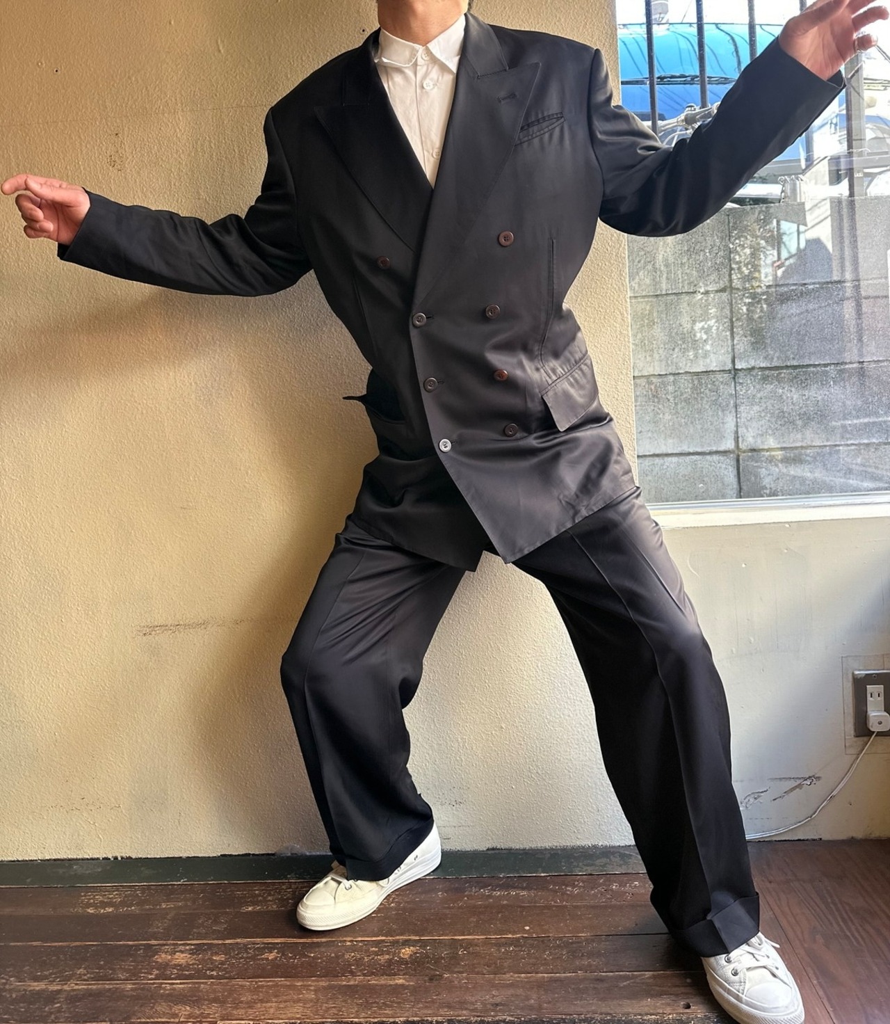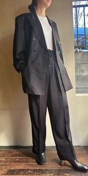 ダブルの長めのゴルチェらしいシルエットのジャケットに、ワイド感あるハイウェストなパンツは、使い回ししやすく、オケージョンにもユーズフルにも着回しの効くスペシャルな1点です。