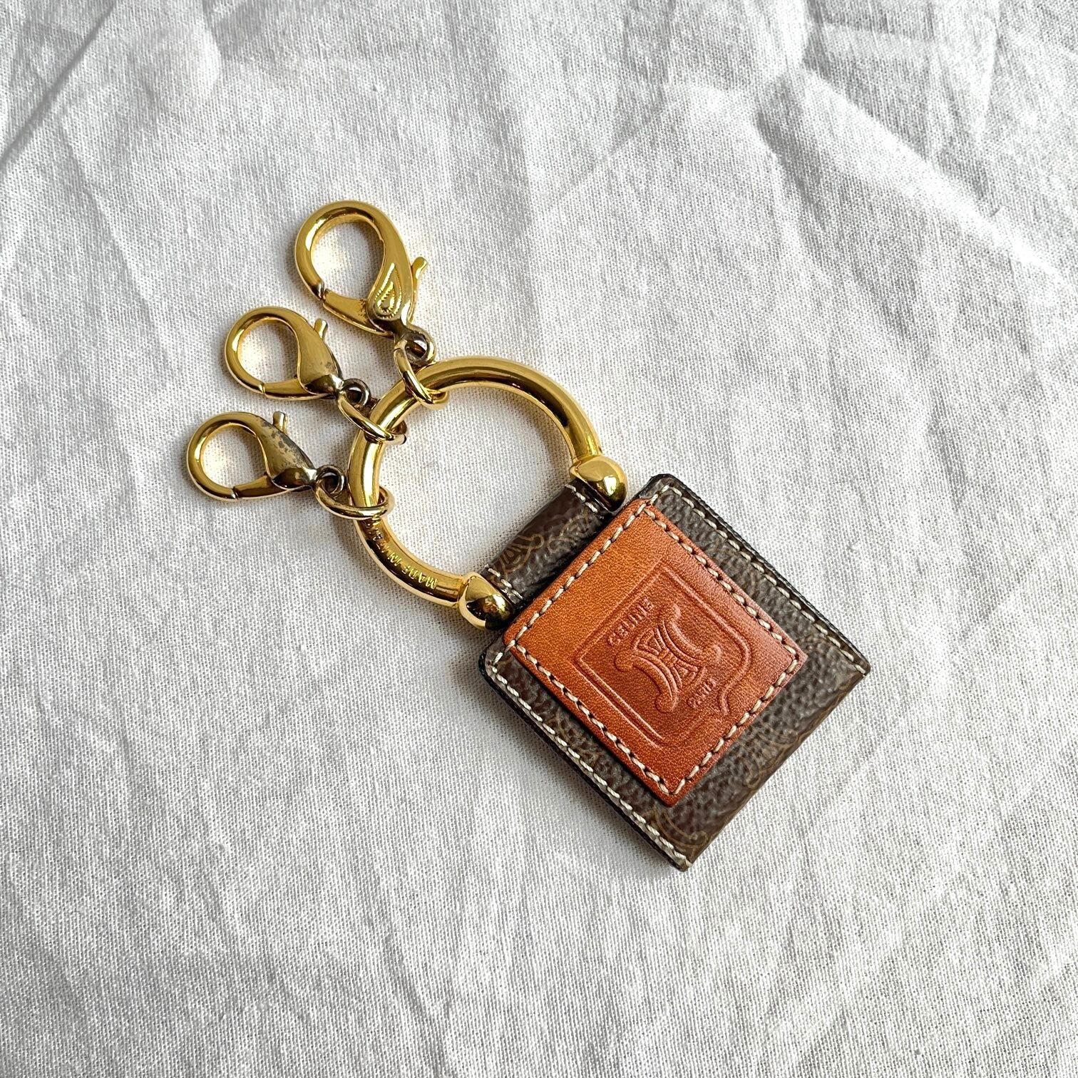 マカダムロゴに大きなゴールドリングが高級感のあるCELINEキーリング☆