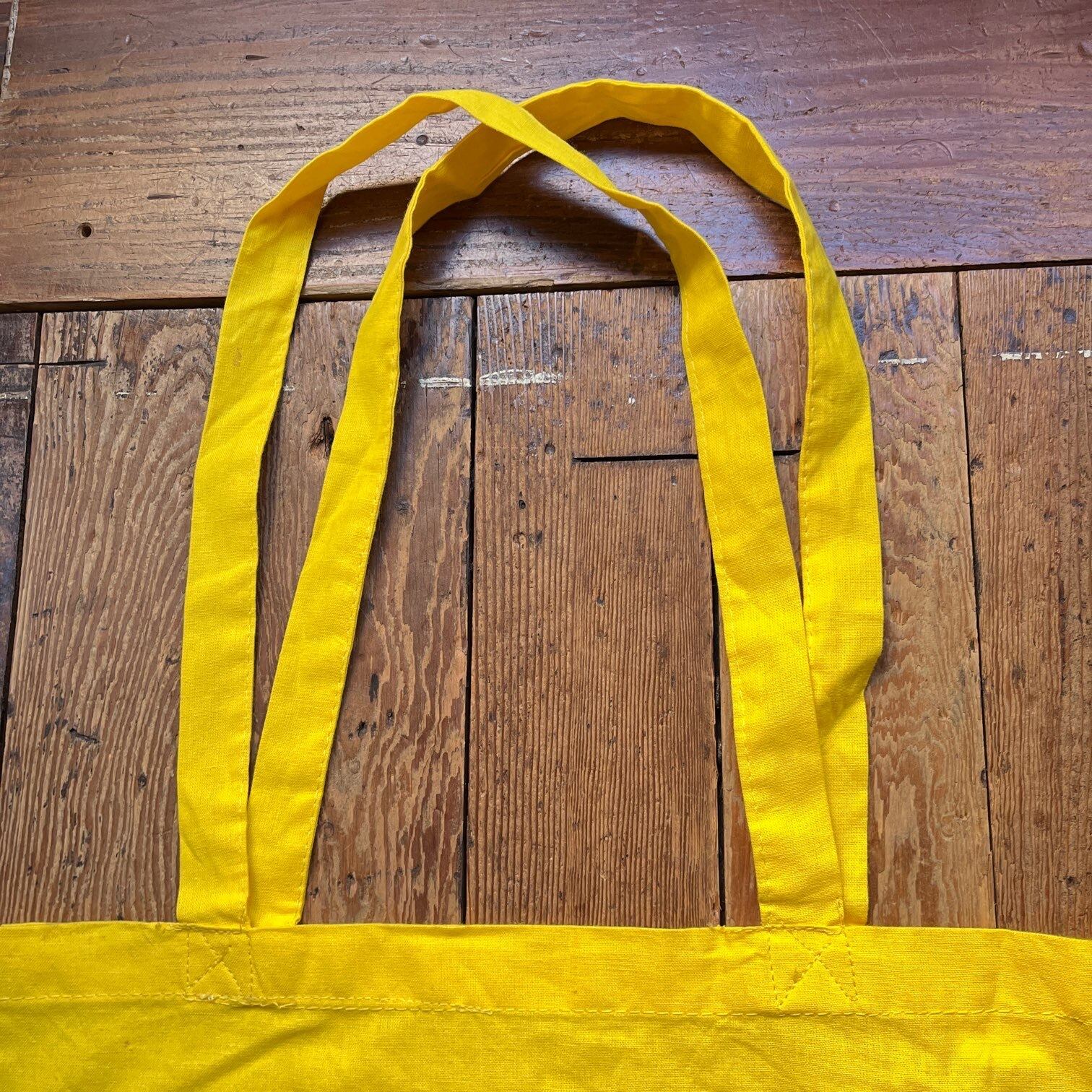 ドイツの子供向け雑誌のエコバッグ。目覚めるようなイエローカラーにゆるいタッチで描かれたライオンが存在感を引き立てるプリント!ライオンの表情もとてもユニークな一品。