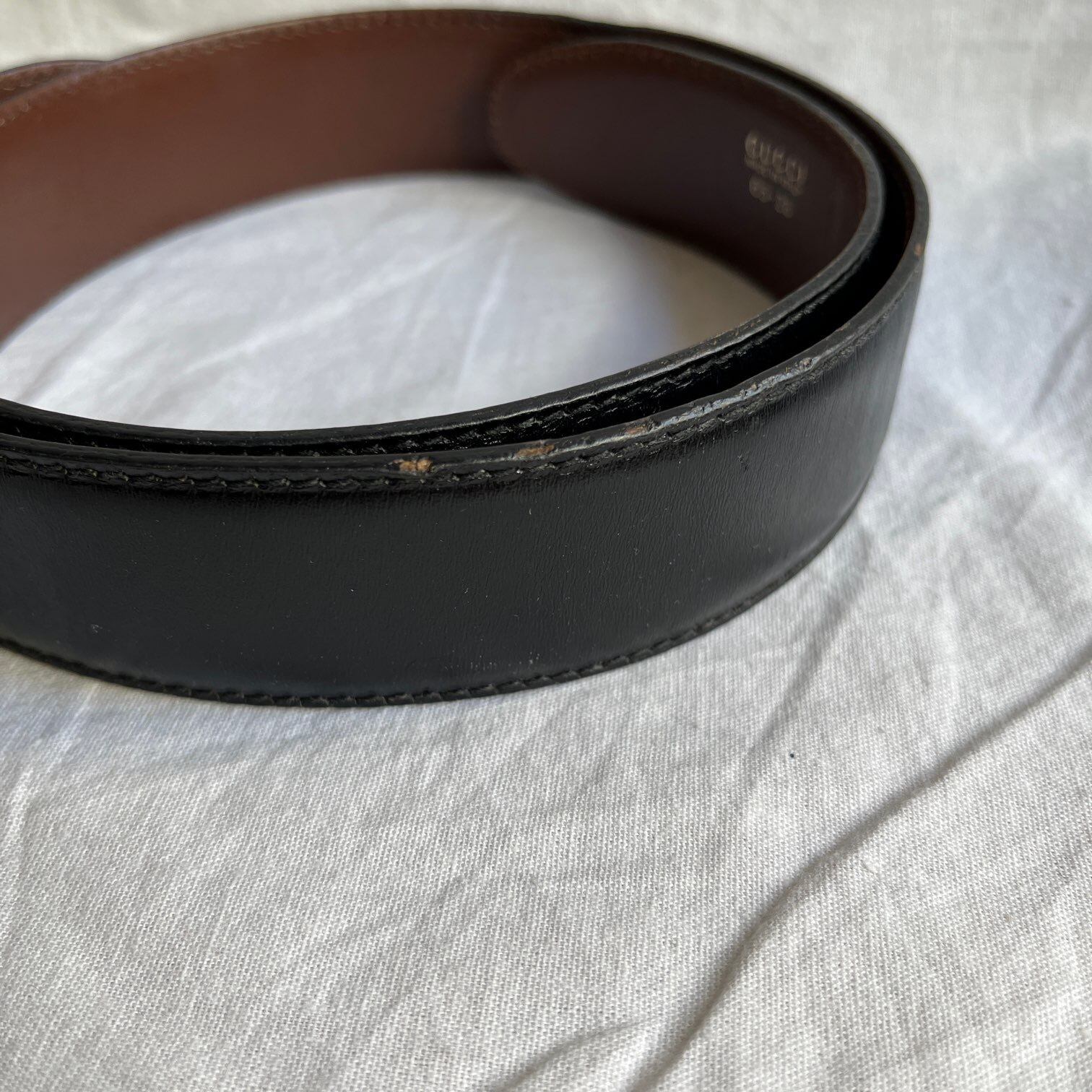 Gucci Black ×Brown Leather "Gold G Buckle Belt