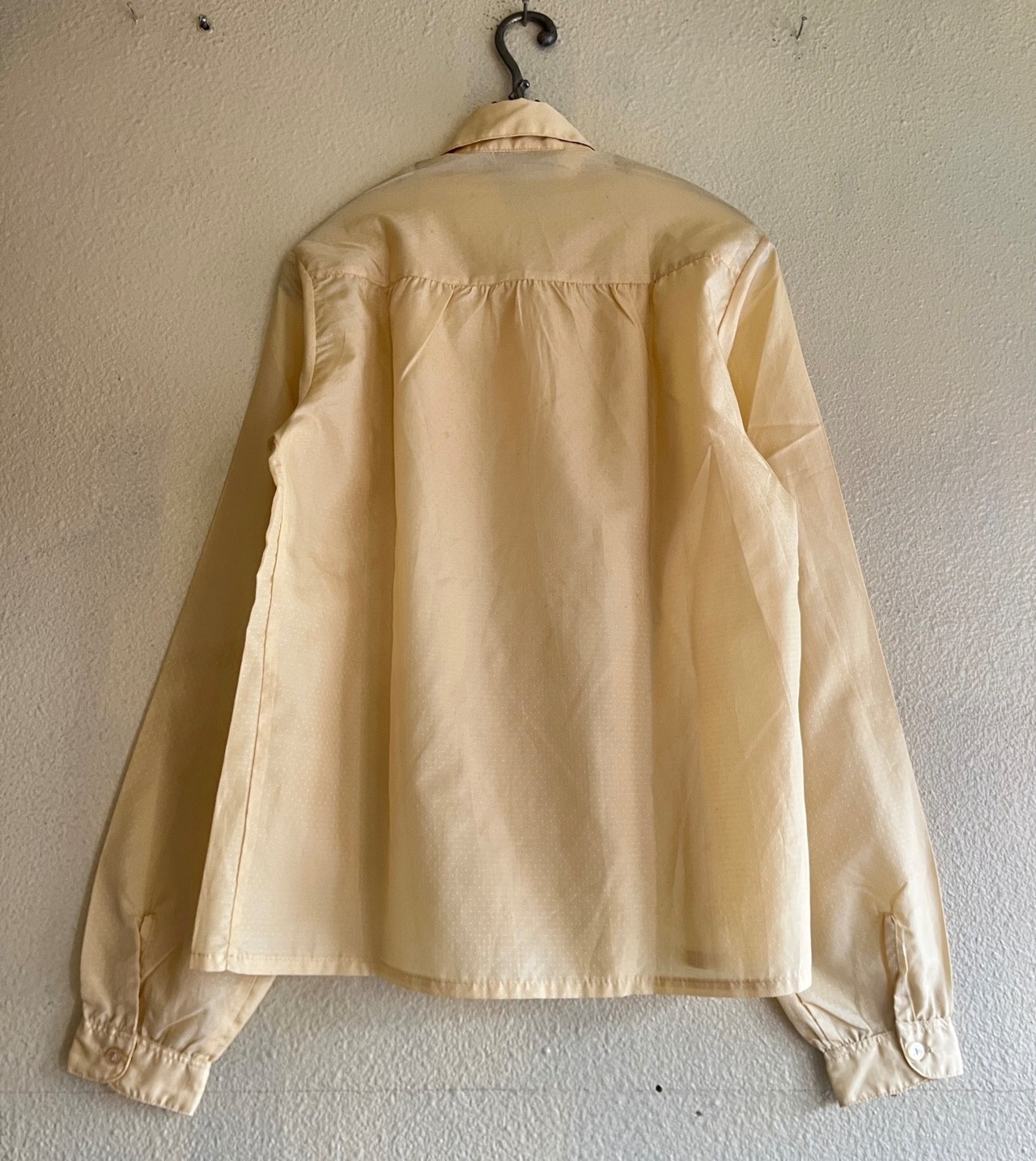 華やかなイエローが目を惹くFranceヴィンテージブラウス。コンパクトな丸襟と細やかなドットが上品でクラシカル!薄手が軽やかな生地が春らしくコーディネートのポイントになる1点です。