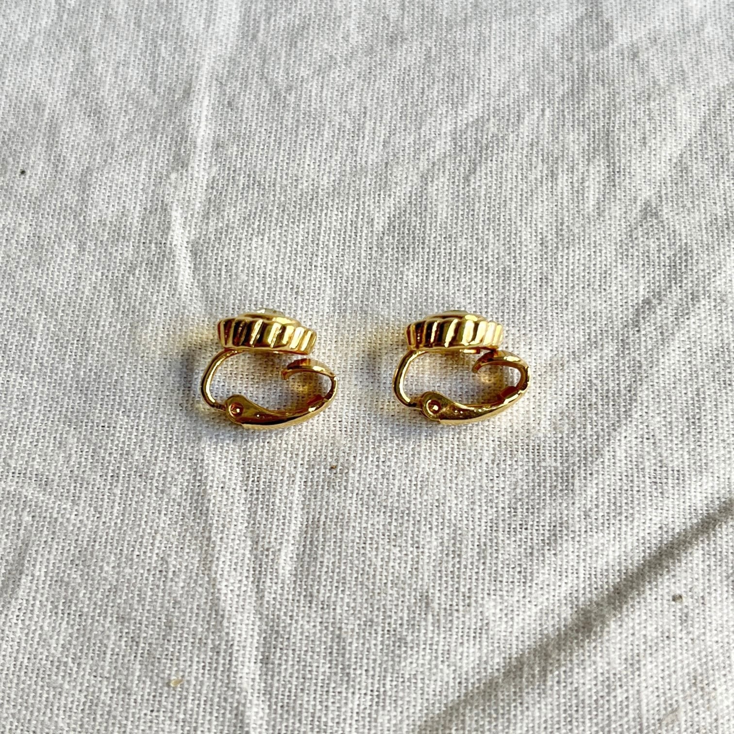 Dior“Gold×Rhinestone”Round Shape Earclip#01