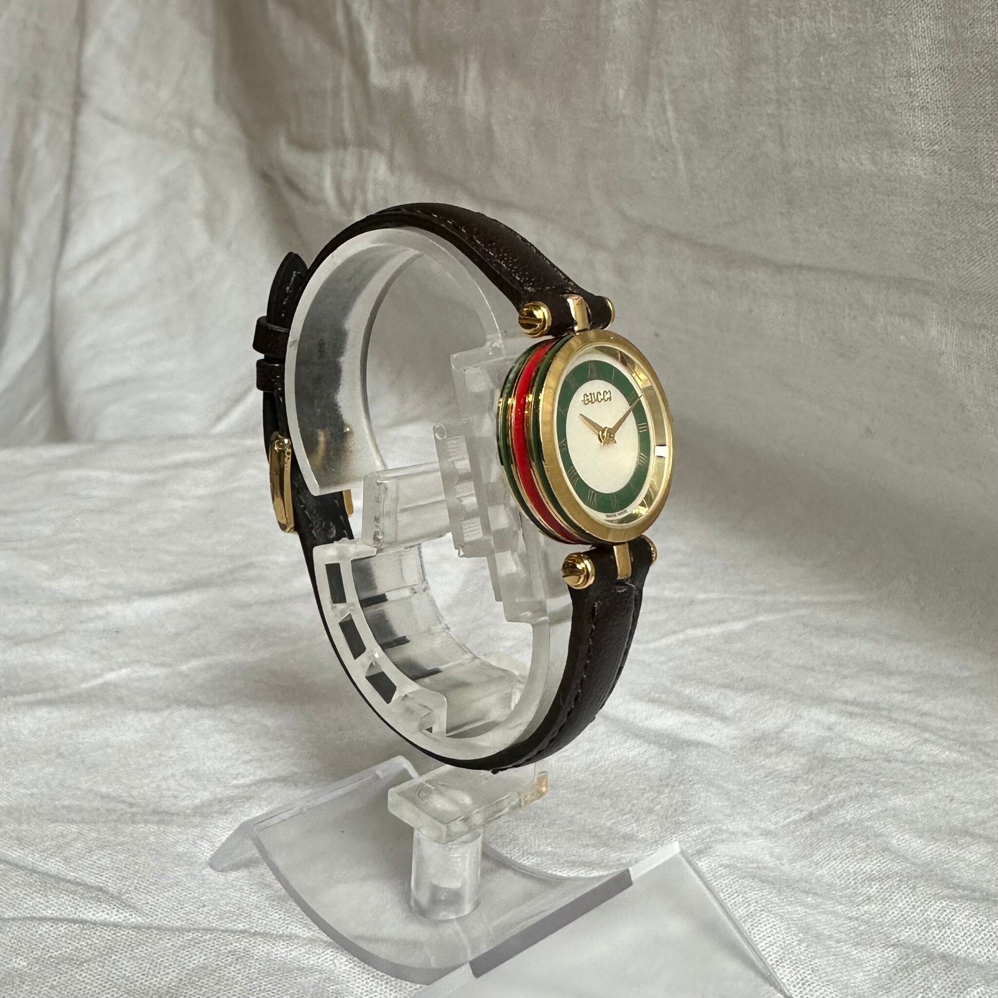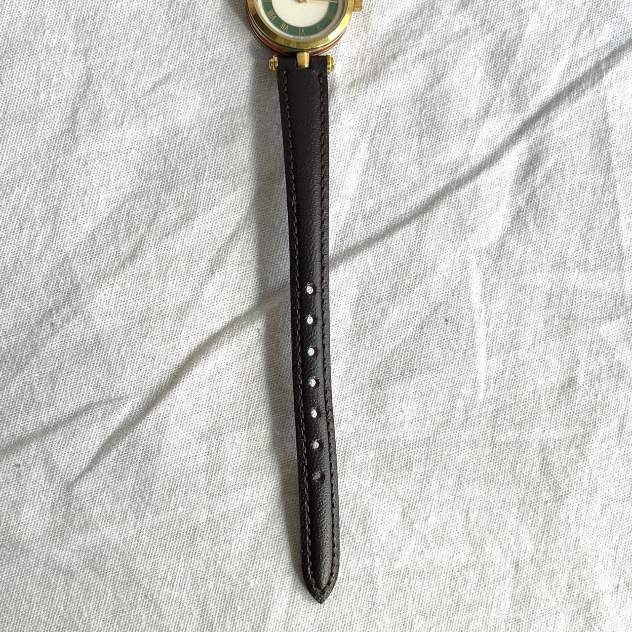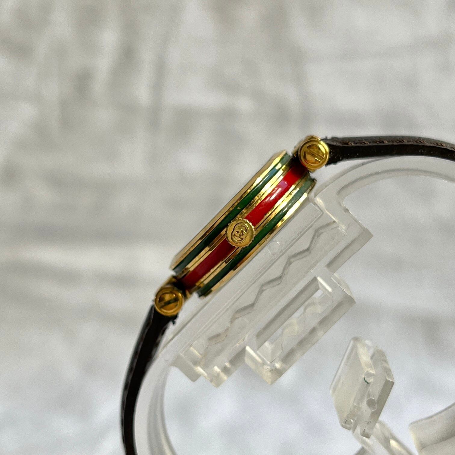 厚みのあるフェイスのサイドに施されたシェリーラインがGucciならではなVintage Watch.