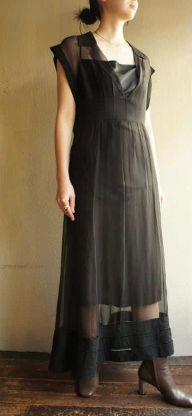 上質シルクのブラックシアーが美しいCHANELのドレス。