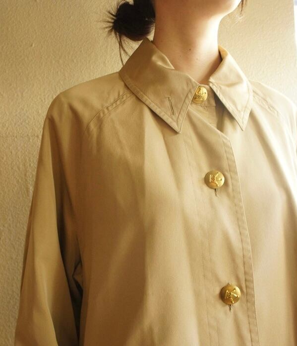 シルク特有の光沢が高級感のあるCHANELステンカラーコート☆